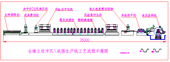 De-coiling—Feeding&leveling———rollforming——Punching——hydraulic cut to length——Auto stacker